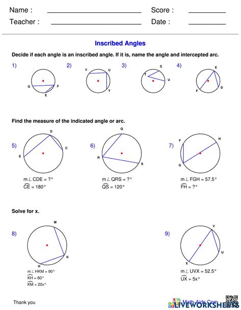 Inscribed Angles Worksheet Doc: A Comprehensive Guide