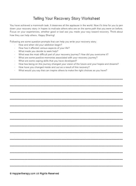 A recovery story worksheet can be a helpful tool to document your journey of recovery. It can help you to gain clarity and to create a plan of action for the future. The worksheet can also help you to recognize progress and successes in your journey. By using the worksheet, you can create a roadmap that will guide you in your recovery and help you to move forward.